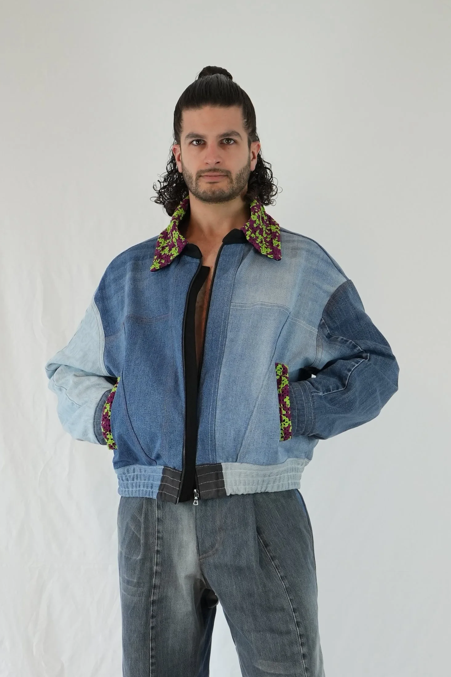 CROCHET COLLAR BOMBER JACKET